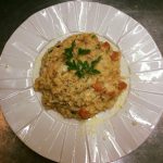 RISOTTO COM CAMARÃO, TOMATE CHERRY, TOMATE SECO, SALSA E QB PICANTE Risotto con Gamberi, Pomodorini, Pomodori Secchi, Prezzemolo e Peperoncino