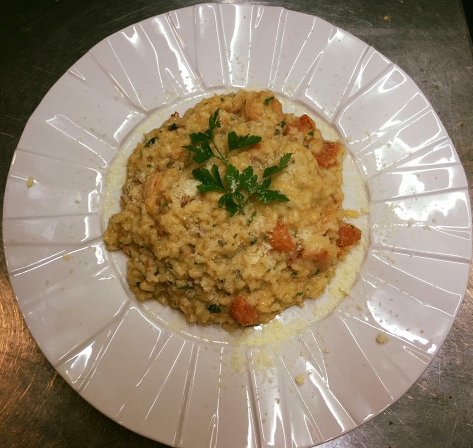 RISOTTO COM CAMARÃO, TOMATE CHERRY, TOMATE SECO, SALSA E QB PICANTE Risotto con Gamberi, Pomodorini, Pomodori Secchi, Prezzemolo e Peperoncino